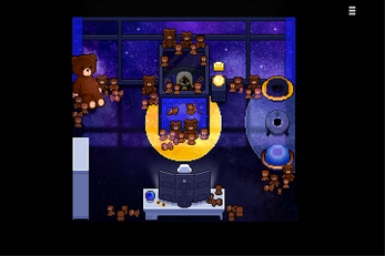 玩家可以在每次进入游戏时选择要扮演的角色,使用物品栏中的“回家券”一键回到自己的住处,也可以在大楼中随意行走,参观其他角色的房间。